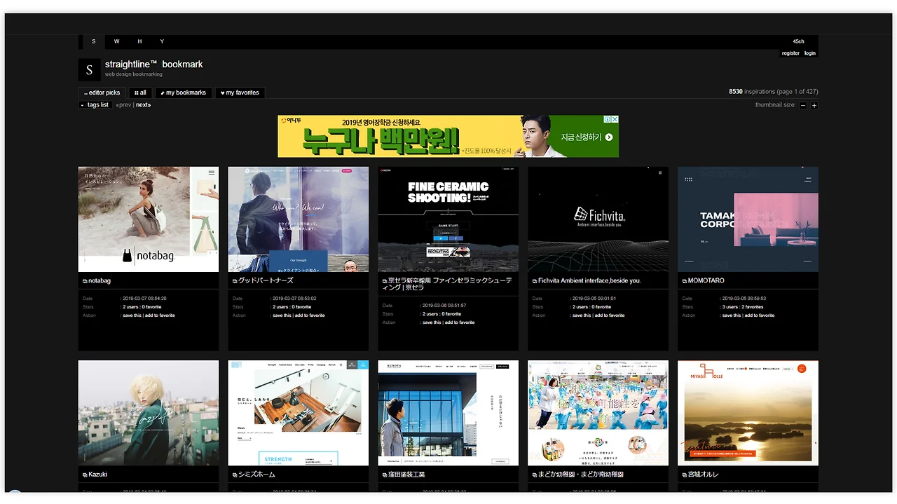 아시아 쪽 웹 디자인을 볼 수 있는 사이트로 벤치마킹에 아주 유용하다.