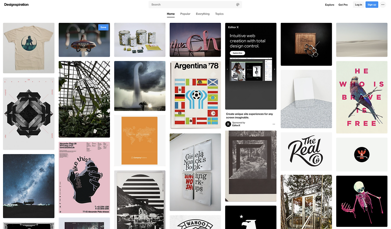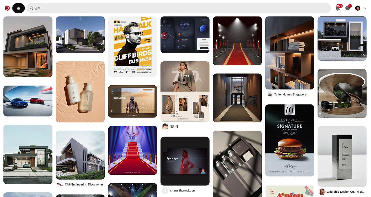 디자인에 영감을 얻을 수 있는 감각적인 이미지를 검색하고 저장할 수 있는 사이트로, 사이트의 목적과 서비스를 저장하고 공유하고 영감을 얻다.라고 말하고 있습니다.