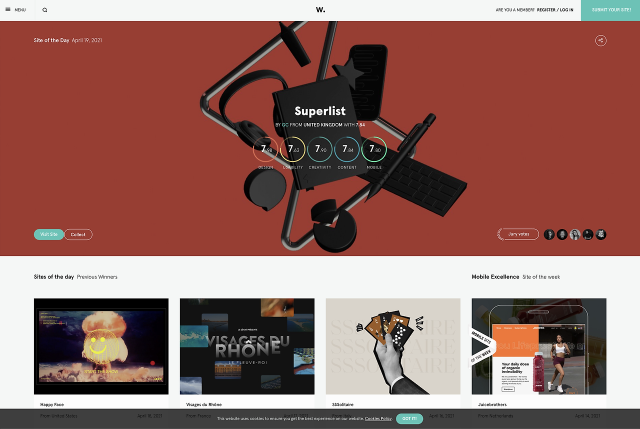 전 세계 웹디자이너 및 크리에이티브 디렉터 블로거 및 디지털 에이전시 관계자들이 위 사이트에 제출된 디지털 프로젝트에 대해 평가해주는 사이트입니다.