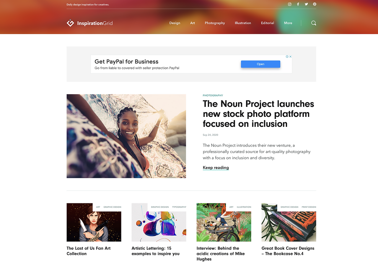 그래픽 디자인, 패키지, 삽화, 건축 등 다양한 분야의 디자인을 검색할 수 있으며, 사용성이 매우 편하게 되어있습니다. 또한 페이스북이나 핀터 레스와도 연동되어 사용하기 편합니다.