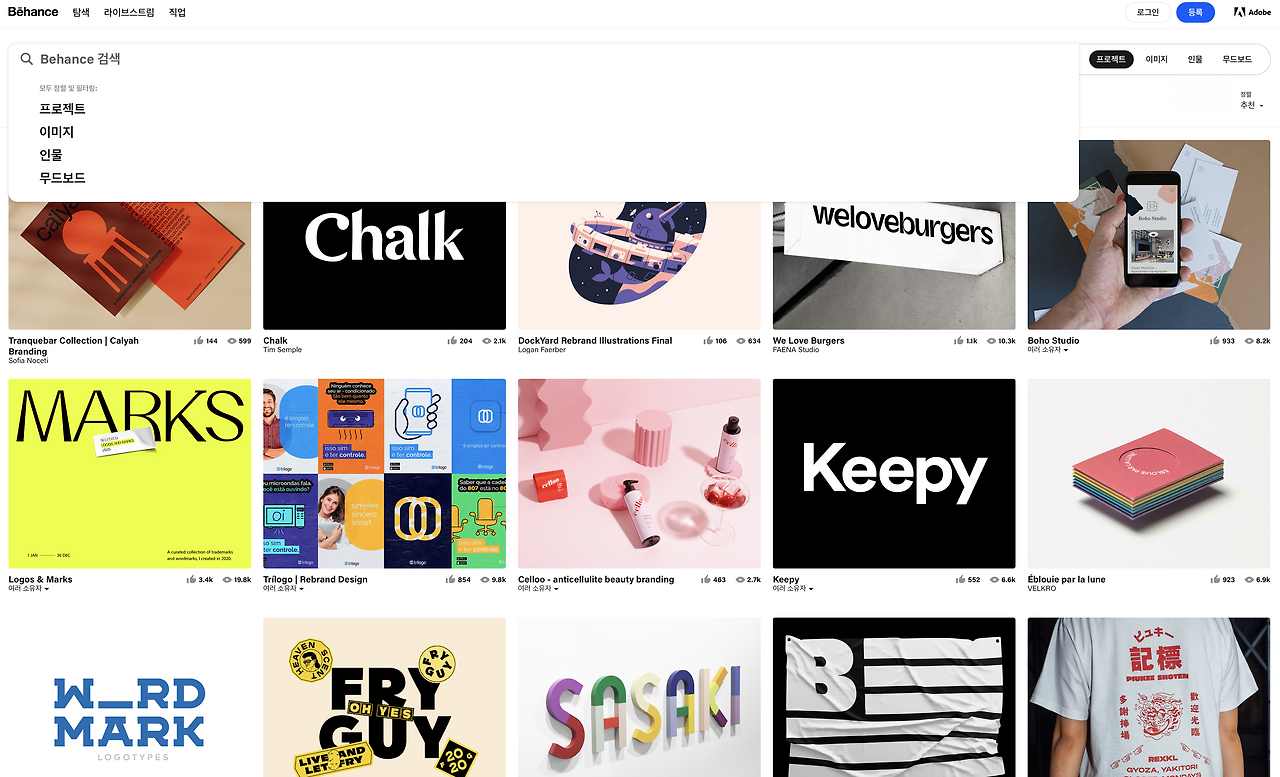 디자인 작업에 필요한 로고, 웹, 모바일 UI, 그래픽 등 다양한 소스를 제공하며 수많은 디자이너들의 포트폴리오를 통해 벤치마킹이 가능하다.