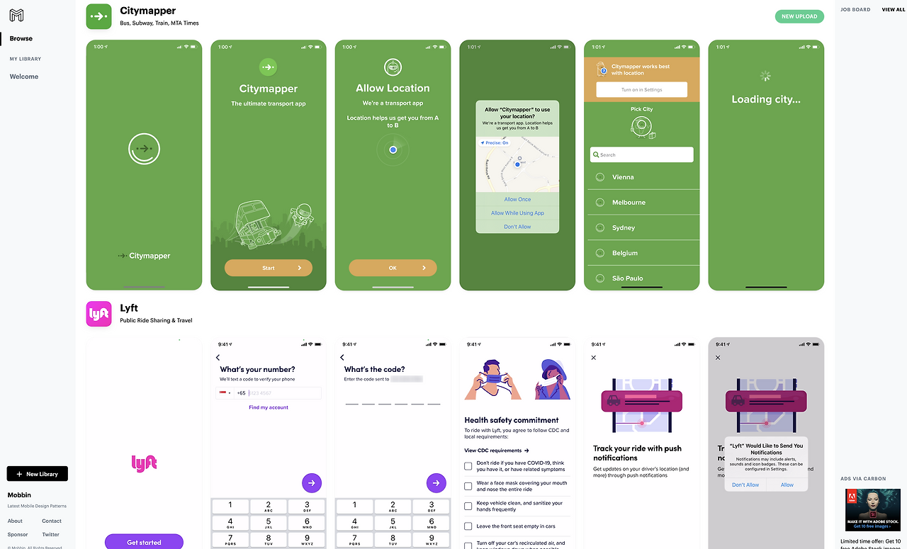 모바일 UX 디자이너에게 도움이 되는 벤치마킹 사이트로 로그인, 에러 페이지 등 패턴별로 모아서 볼 수 있는 서비스를 제공합니다.