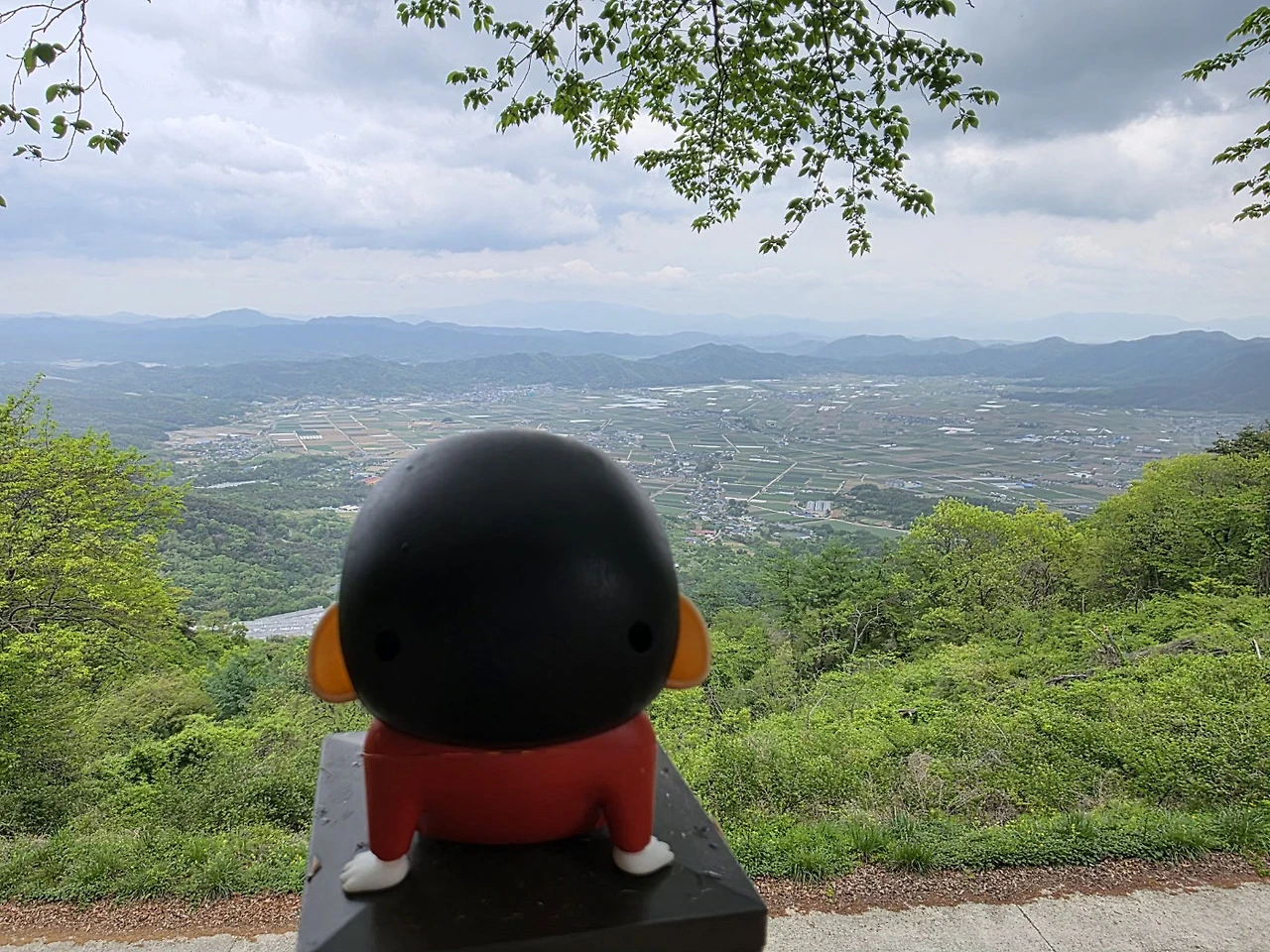 "아들과 함께 탐방로를 올라가려는데 비가 오는데도 우산도 없이 전망대에서 멀리 운석이 충돌한 분지를 바라보는 뒷모습을 보았어요. 첨엔 그냥 지나치려 했는데 뒷모습을 보니 아무래도 짱구 같았어요!"