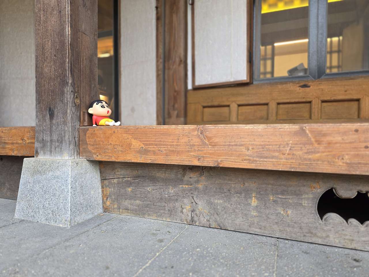 앉아 있는 곳은 원래는 한옥의 대청마루였던 곳으로 현재는 창문을 설치해 방으로 사용한다.