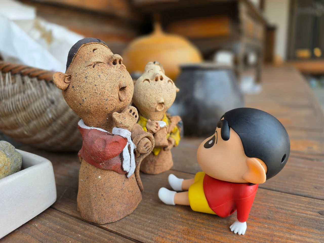 짱구는 오자마자 평상에 펄썩 앉아 저 멀리 풍경을 내려다본다.