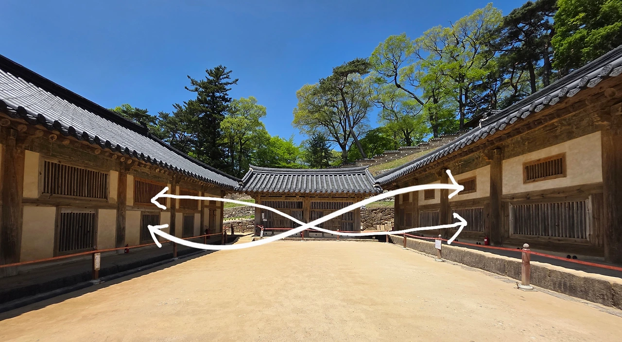 건물은 대부분 남향으로 배치되어 햇빛의 이점을 살리면서도, 창의 크기와 설계를 통해 그 양을 조절합니다. 장경판전의 각 동(棟)에서 남쪽 창은 크고 아래쪽에, 북쪽 창은 작고 위쪽에 위치합니다. 이는 단순한 미학적 선택이 아닙니다. 여름철 남동풍이 불어올 때, 남쪽의 큰 창으로 신선하고 상대적으로 건조한 공기가 유입됩니다. 이 공기는 목판 사이를 지나며 내부의 습기를 머금고 더워져 가벼워지고, 자연스럽게 상승하여 북쪽의 작은 창으로 빠져나간다. 이것이 바로 자연적인 대류 현상을 극대화한 ‘굴뚝 효과(chimney effect)’입니다.