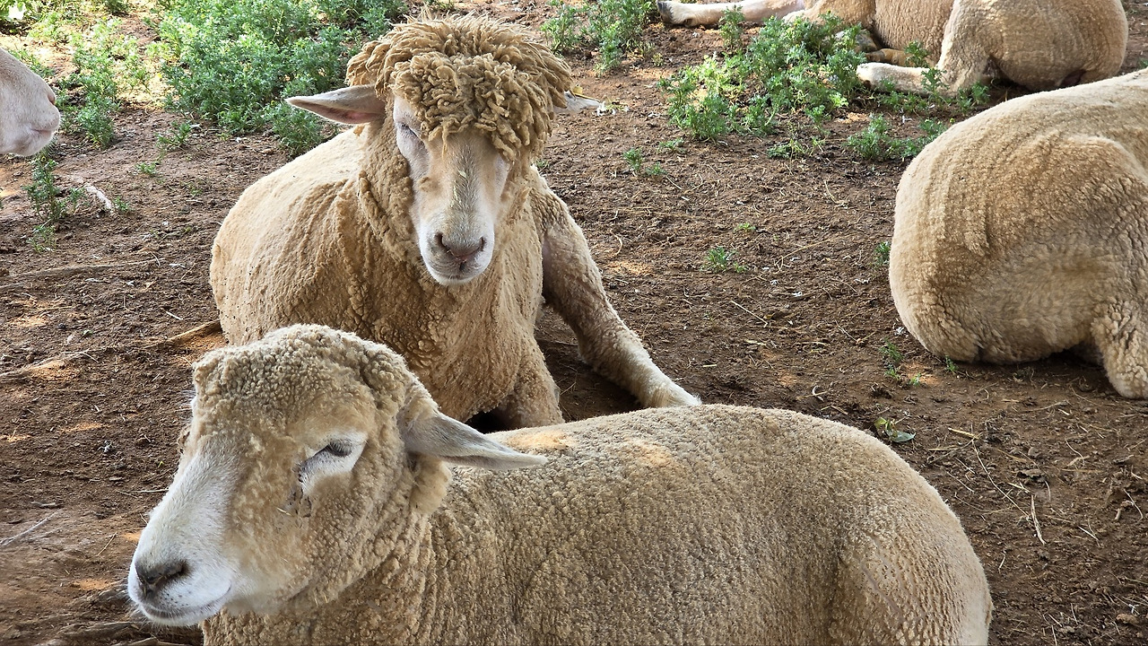 그늘에 앉아 쉬던 양떼 무리 중 하나가 짱구에게 말을 건넨다.