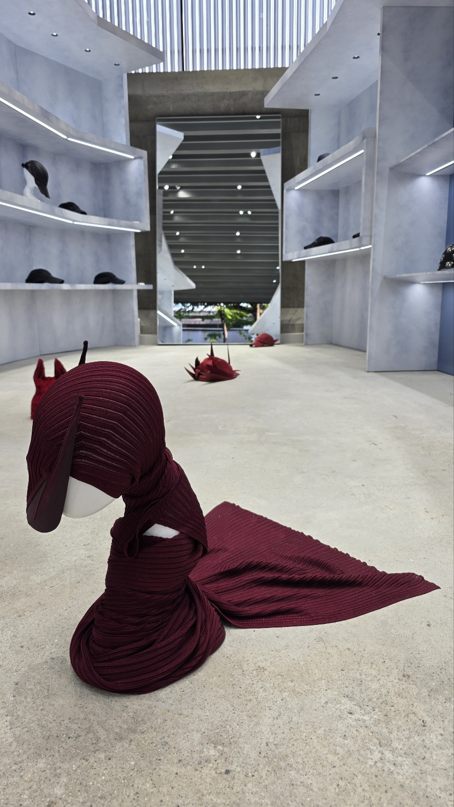 걷다가 싱크홀에 빨려들 듯 들어간 곳입니다. 나중에 알고보니 젠틀몬스터가 새로 런칭한 캣 아티슈 모자 브랜드 shop 이더군요.. 역시 실험적인 브랜드 철학이 디자인에 반영되어 힙~합니다! 팽팽하게 당겨져 찢어진 스타킹이 이번 컬렉션의 주제랍니다.