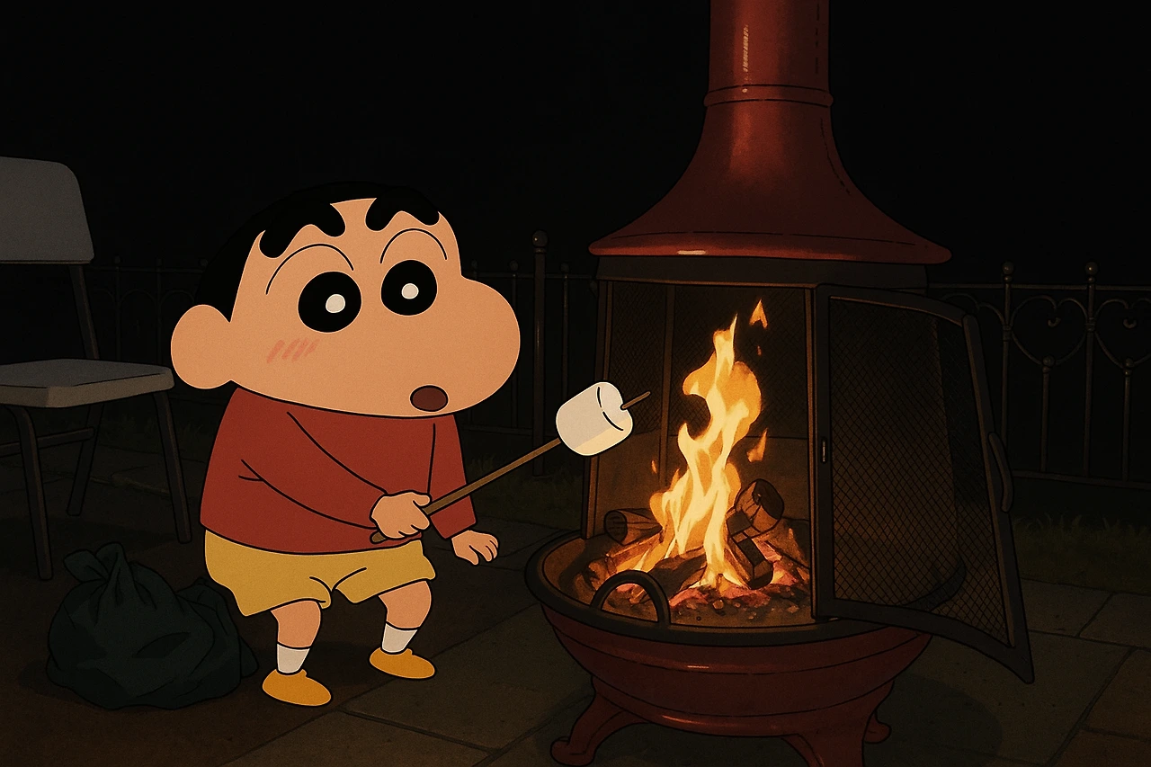 짱구는 캠프파이어 불멍을 무척이나 좋아한다.