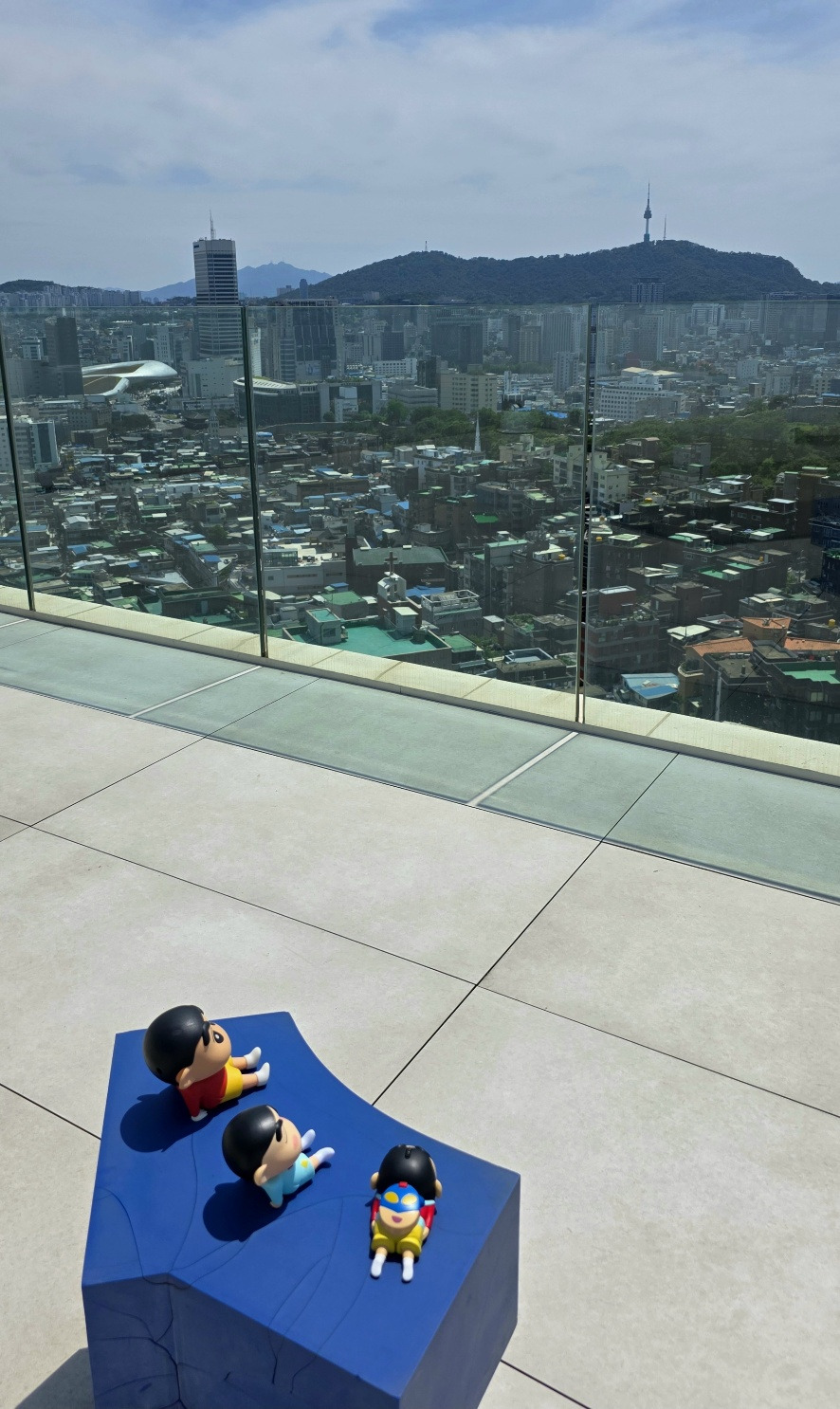 서울의 지형은 정말 특이하다. 중앙의 남산을 축으로 외곽에 산이 둘러져있음으로 외곽에서 서울 중심부를 들여다 볼 수 있는 뷰를 확보할 수 있다. 특히 강북에서는 옛 성곽의 테두리로 인하여 옛 서울의 흔적을 발견할 수 있다. 그 안에 옹기종기 들어선 많은 건물들이 바자회에 나온 온갖 잡동사니를 보는 듯하다. 그 안에는 아주 오래된 낡은 건물도, 반짝반짝 빛나는 키큰 최첨단 자동식 건물도, 요상한 자갈처럼 빛나는 둥근 건물도, 벽돌식 빌라 건물도 다 있다.
