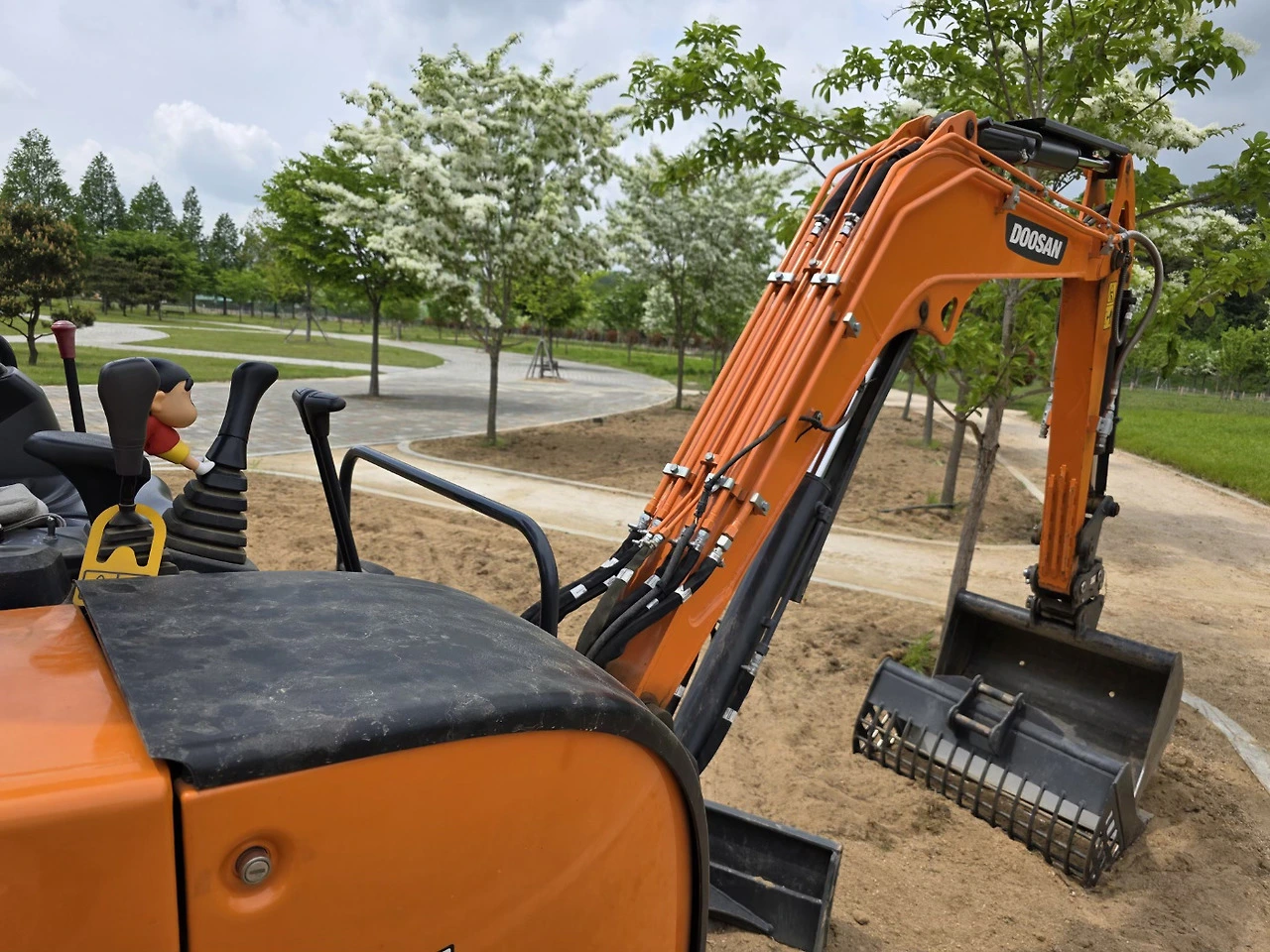 짱구는 어릴 적 삼촌과 놀러 간 한 공원에 잠시 세워져 있던 포클레인을 타고 정말 즐거워했다.