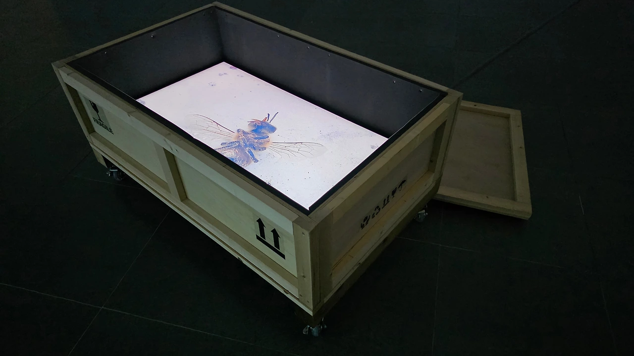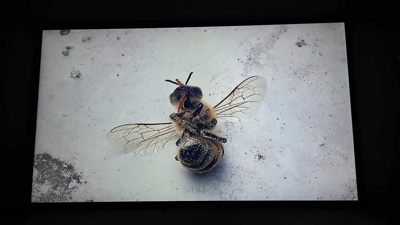 다른 열린 상자에는 작은 벌 하나가 죽어가고 있다.