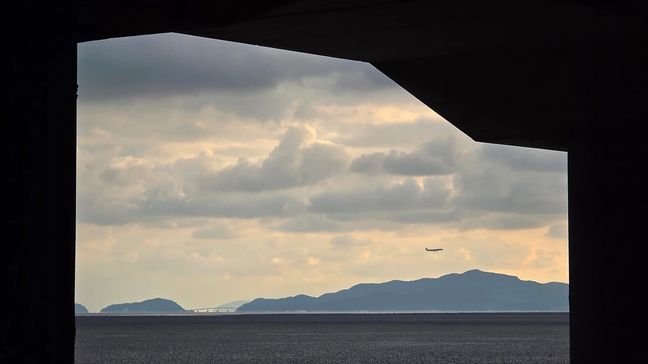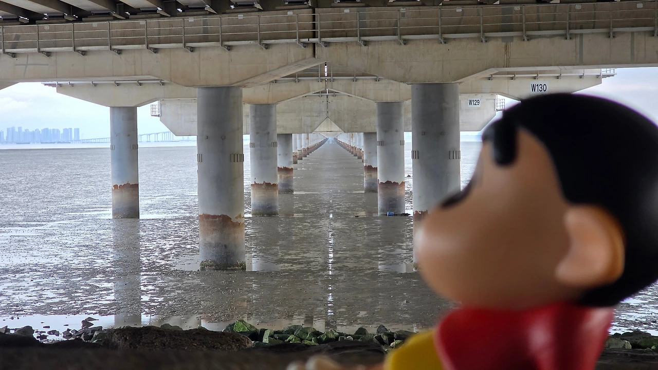 영종대교를 바라볼 수 있는 전망대에서 망원경에 앉아있는 짱구를 발견했네요!