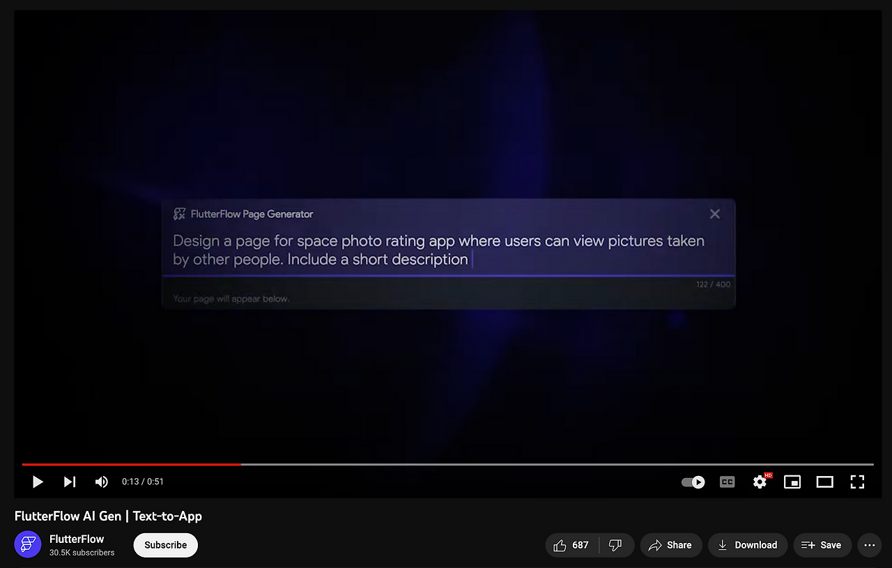 FlutterFlow AI Gen | Text-to-App, FlutterFlow Youtube