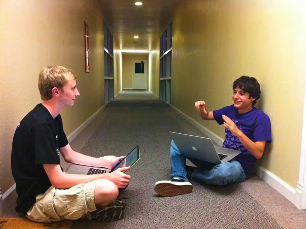 2012년으로 거슬러 올라갑니다. 피그마는 대학교 친구인 딜런 필드(Dylan Field)와 에반 월리스(Evan Wallace) 두 명이서 시작했어요.