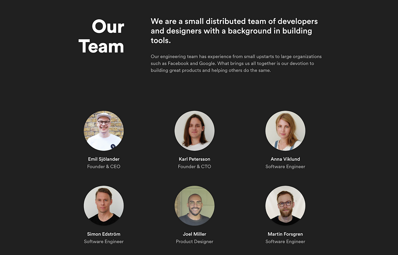 제가 왜 visly 이야기를 꺼내냐고요? visly는 2020년 경 피그마에 인수가 되었습니다. visly.app 링크는 피그마로 리다이렉트가 되고 있고요, 아래에 창업자 Emil을 포함하여 사이좋게 작업하는 모든 팀원들은 사이좋게 피그마 직원이 되었네요. 링크드인으로 확인해 보았는데, 아직까지 몇 년간 피그마에 있는 것을 보니 피그마 어느 골방에서 작업을 하고 있을 거예요..