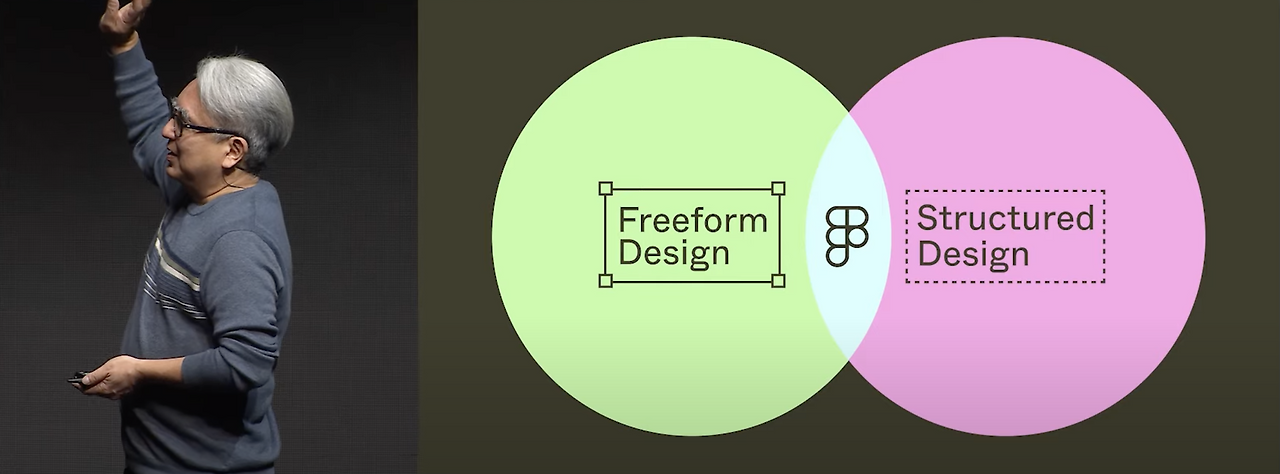 이 문제을 꿰뚫는 핵심은 구조적인 사고에 있다고 생각합니다. Schema 2022에서 피그마 VP인 Sho Kuwamoto는 창의적이고 쉽게 그려낼 수 있는 자유 형식의 디자인(Freeform Design)만으로는 실제 구현까지는 부족하며, 구조화된 디자인(Structured Design)적 사고가 뒷받침되어야 안정적인 구현을 이루어낼 수 있다고 말합니다. 또한, 이 두 종류의 디자인은 어느 한쪽에 치중한 것이 아닌 동등하게 중요한 영역임을 강조했습니다.