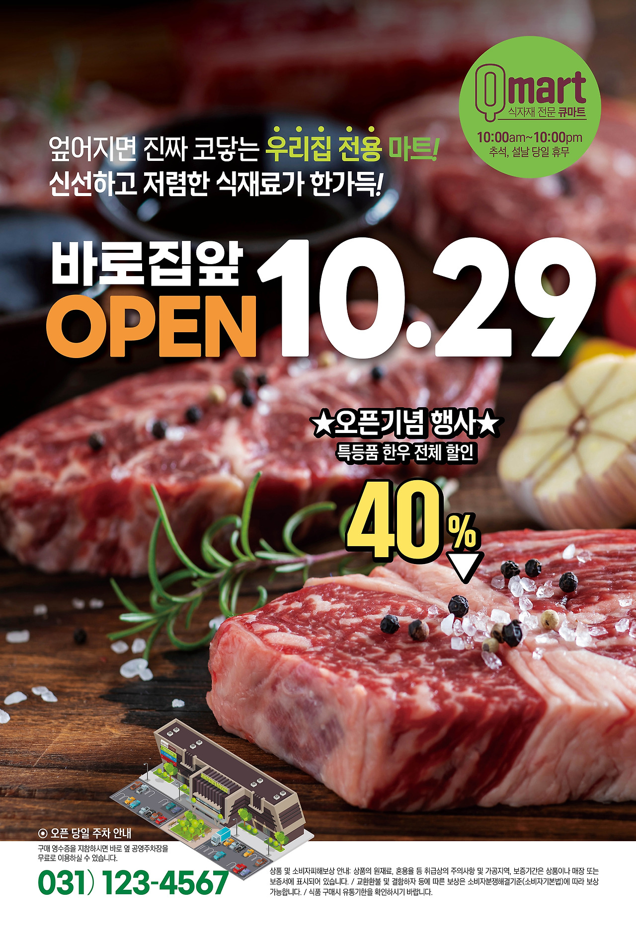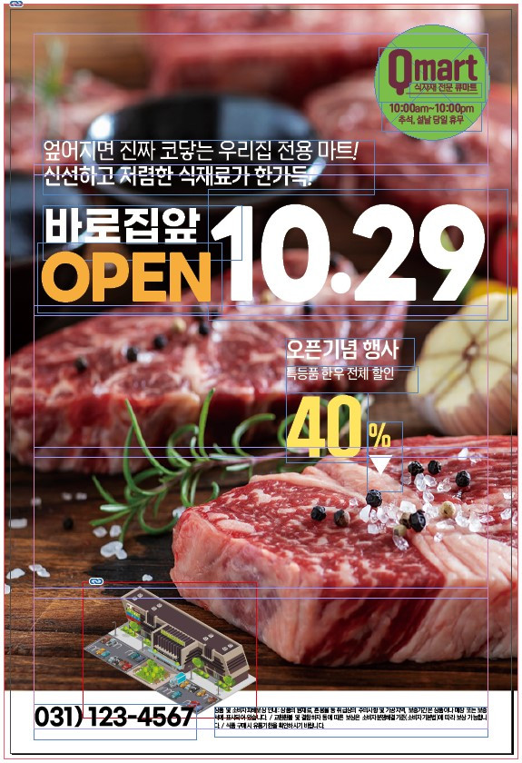 조건의 의미; 보편적으로 많은 마트 오픈홍보 전단지의 레이아웃 예시를 따르면서도 사용자의 반응을 일으킬 수 있는 것이 뭘까를 찾아내거나 open이면서 좀 더 효과있는 시각적 요소를 만들어 내거나.