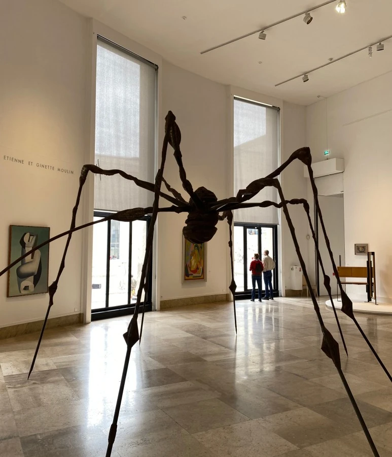 화려한 구성과 색상의 입체주의 작품들 가운데, 독특한 형태의 대형 조각품이 눈에 들어왔습니다. 이 낯설지 않은 거미 조형물은 프랑스 태생의 미국 현대미술가 루이즈 브르주아(Louise Bourgeois) 작가의 작품입니다. 거미는 그녀의 작품에서 가족, 인간의 내면세계 등 복잡하고 상징적인 의미를 표현합니다. 세계 곳곳에서 발견할 수 있는 루이즈 브르주아의 거미 연작은 언뜻 보면 기괴하고 징그러울 수 있지만, 자세히 보면 알을 품고 새끼들을 지키기 위해 다리를 뻗고 있는 거미의 모성애를 표현한 것입니다.
