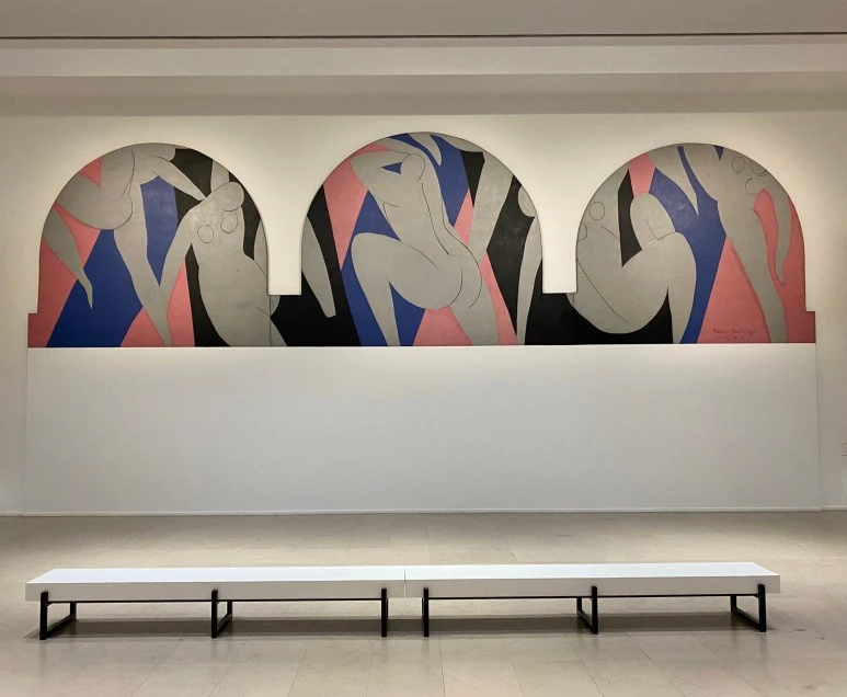 다음은 야수파 거장 앙리 마티스(Henri Matisse)의 작품입니다. 앙리 마티스는 생동감 넘치고 강렬한 작품들로 유명하지만 파리 시립 현대미술관에서 만난 그의 작품은 차분하고 잔잔한 인상을 전해주었습니다. 그뿐만 아니라 거대한 작품의 사이즈, 그 자체만으로도 강렬한 느낌을 받을 수 있었습니다. 작은 노트 하나에 그림을 채워 넣는 것만도 시간과 노력을 들여야 하는데, 큰 규모의 완성도 있는 작업을 위해 그가 쏟아 넣은 열정은 앙리 마티스가 세계적인 거장이 될 수 있었던 이유를 말해주는 것 같았습니다. 노년의 앙리 마티스는 붓으로 그림을 그릴 힘이 없어져 색종이를 오리며 죽기 직전까지 예술을 놓지 않았다고 합니다. 그는 죽은 이후에도 수많은 사람에게 영감을 주며 그의 예술을 이어가고 있는 것만 같습니다.