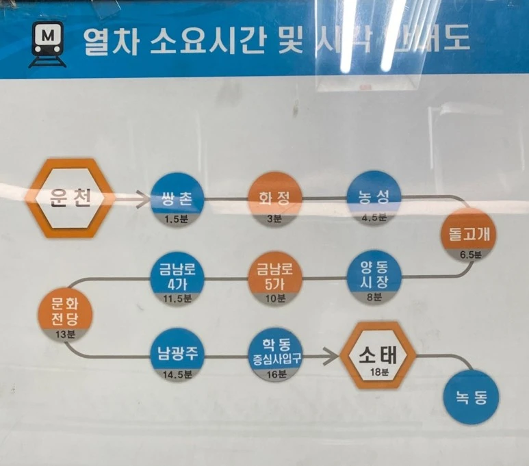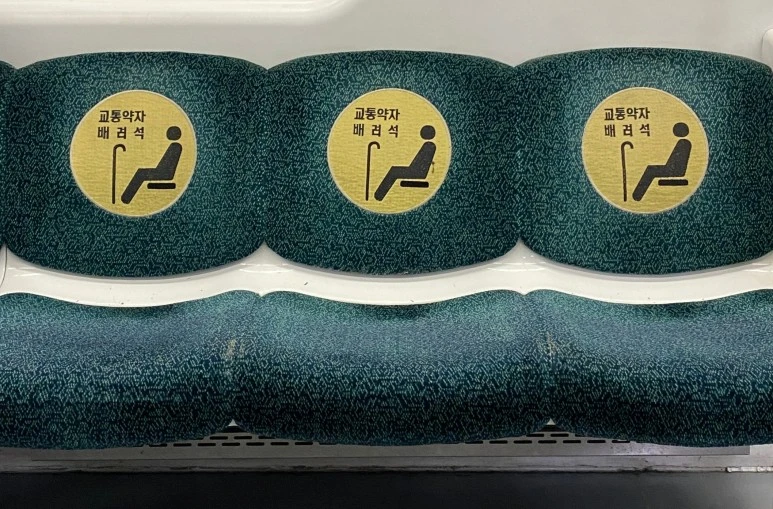 가장 먼저 광주의 그래픽들을 볼 수 있었던 곳은 지하철이었습니다. 서울과는 다르게 담백하면서 간결한 인포그래픽은 자연스럽게 눈길을 끌었습니다. 열차 소요시간을 표현한 그래픽과 전철 캐릭터 또한 투박하지만 정겹게 느껴졌습니다. 전철 내부에서는 교통약자 배려석 표시를 좌석에 수놓아 한눈에 알아볼 수 있게 한 점도 인상 깊었습니다. 어떠한 여행지를 가도, 가장 먼저 우리를 맞이하는 교통수단은 그곳의 개성을 잘 보여준다고 생각합니다. 이러한 광주의 개성은 지하철에서 내려 버스로 환승하면서 다시 한번 알아볼 수 있었습니다.