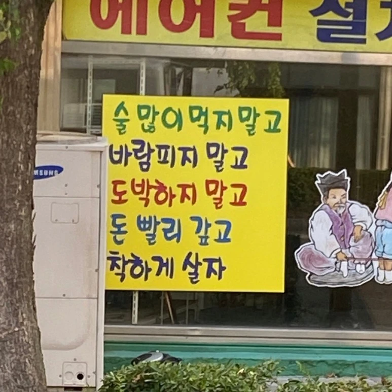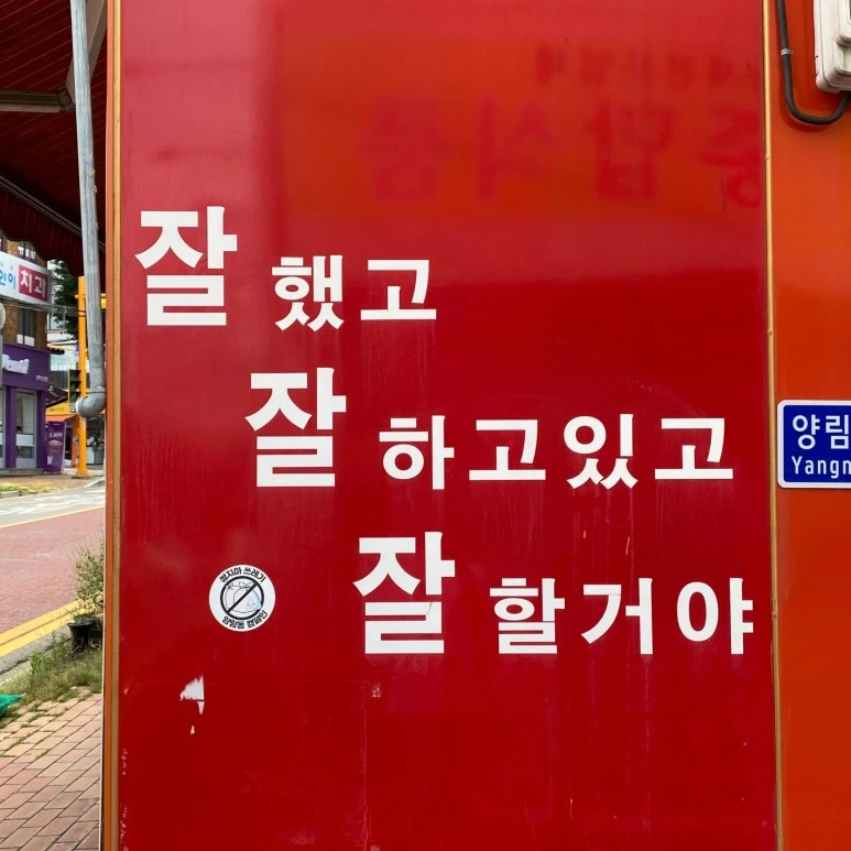 전시를 다 보고 난 후, 광주 시내 곳곳에서 광주의 귀여움을 배가시키는 풍경들을 만나볼 수 있었습니다. 짧지만 강렬하게 삶의 교훈을 주는 글귀부터 가슴 뭉클해지는 믿도 끝도 없는 응원 그리고 실소를 자아내는 이미지들은 귀엽다 못해 유머러스하게 느껴졌습니다.