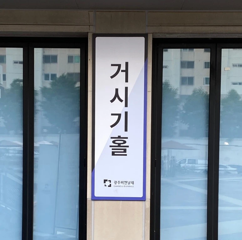 강렬했던 예술의 거리를 지나 도착한 광주비엔날레 전시관에서는 거시기홀 표지판이 반갑게 맞이해 주었습니다.