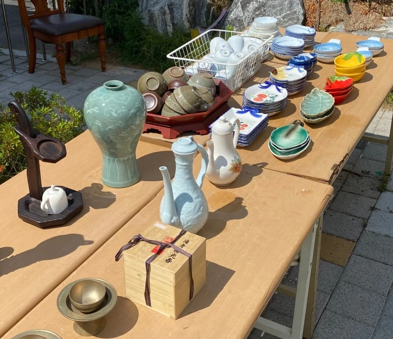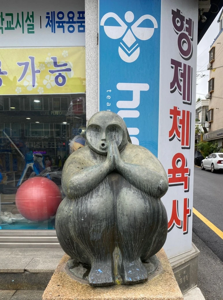 아무런 기대 없이 들어선 예술의 거리는 유럽의 벼룩시장만큼 흥미롭고 호기심을 자극하는 물건들을 만나볼 수 있었습니다. 각종 도자기와 청자, 놋그릇 그리고 멋스러운 병풍과 그림들이 거리를 가득 채우고 있었습니다. 또한 그리스인지 로마인지 모를 양식의 이국적인 청동상과 거리 곳곳의 조각품들은 뒤편의 상가 간판들과 어우러져 독특한 분위기를 자아냈습니다.