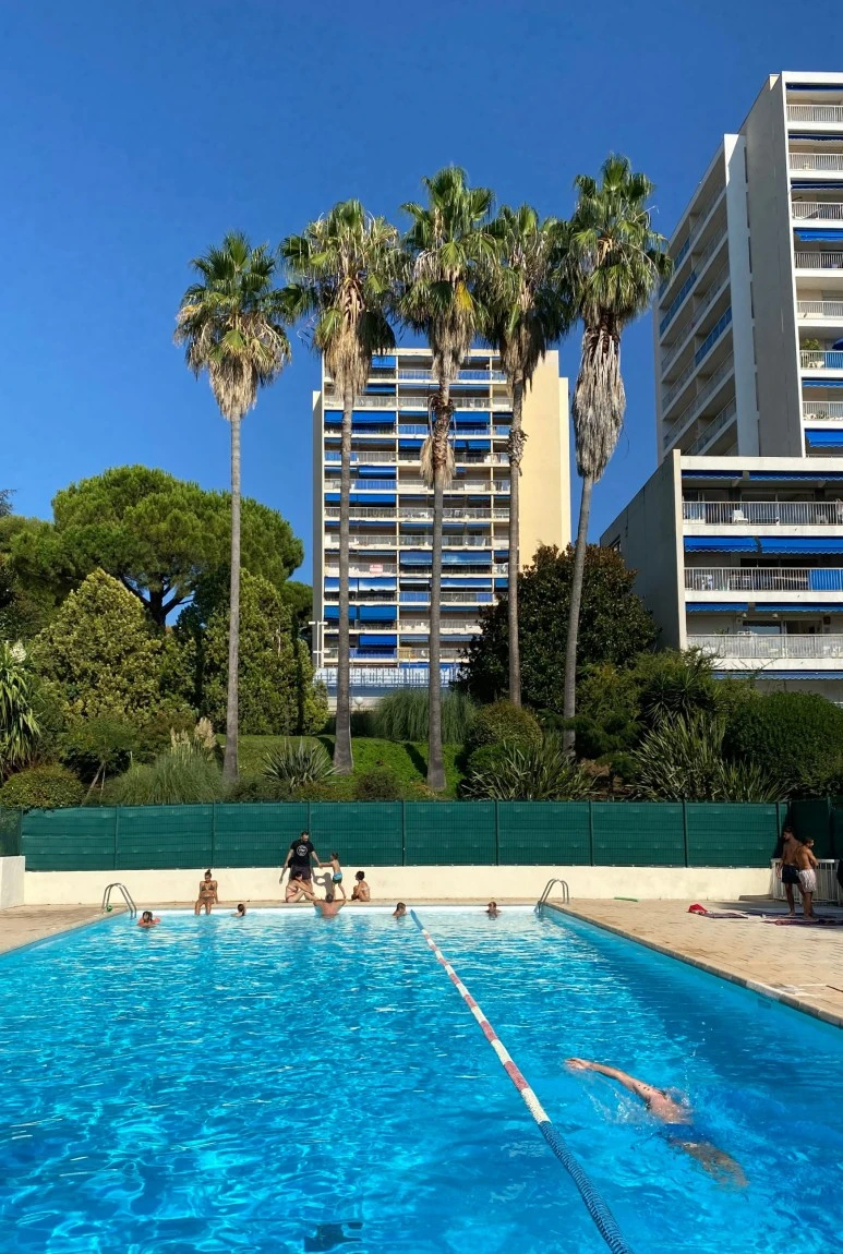 저는 한창 인파로 붐비는 바캉스철인 8월에 예약을 한지라, 니스 도심의 숙박시설을 구하기 어려웠습니다. 그래서 니스공항 근처의 콘도 중 한 곳에서 숙박을 하게 되었는데 오히려 이 지역이 한적한 분위기에 로컬의 느낌이 한껏 나서 여행객이 아닌 현지인이 된 기분으로 지낼 수 있었습니다. 콘도에는 널찍한 수영장이 딸려있었는데, 바로 이 수영장이 니스에서의 바캉스를 알리는 신호탄이라고 생각되었습니다. 청량하고 푸른 물빛과 따사로운 지중해의 햇빛은 저를 이 도시와의 첫 만남에서 사랑에 빠지게 만들기에 충분했습니다.