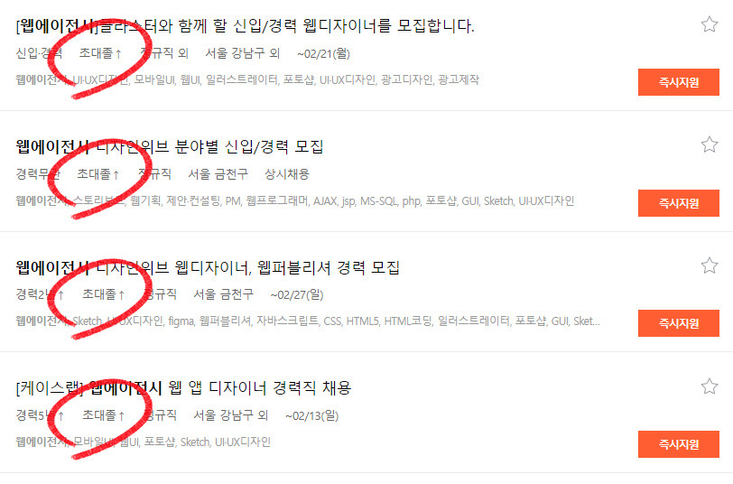 웹디자이너를 뽑은데 4년제 졸업장까지 요구하는 회사는 많지 않지만 고졸 사원 채용을 피하려는 회사는 좀 있는 것 같습니다.