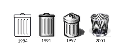 하지만 윈도우즈가 등장하면서 휴지통이라는 '메타포'를 사용하게 됩니다. '메타포'란 '비유'라고 할 수 있는데, 정말 쓰레기를 휴지통에 버리는 듯한 '메타포' UX를 추가해 누구나 쉽게 파일을 지울 수 있는거죠!