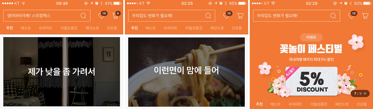사용자는 제품/서비스와 상호작용하며 해당 브랜드에 대한 특정한 '인상'이 생깁니다. TMON의 경우 브랜드 컬러와 폰트, 특유의 말투를 통해 적극적으로 사용자와 교감을 계속하며 인상을 남기고 있습니다. TMON만의 병맛스럽지만 재밌는 말투와 이를 뒷받침하는 개성 있는 폰트 사용, 그리고 TMON의 오렌지 컬러로 브랜드의 정체성을 적극적으로 표현하고 있죠. 이런 여러 가지 요소로 인해 특정 고객들은 TMON 앱에 자꾸 찾아가 보고 싶고, 1초라도 더 머물고 싶은 서비스로 받아들이도록 하는 거죠. 이러한 인상은 우연히 만들어지는 것이 아닙니다. 모두 '의도된 사용자 경험'에 의해 구축된 것이죠.