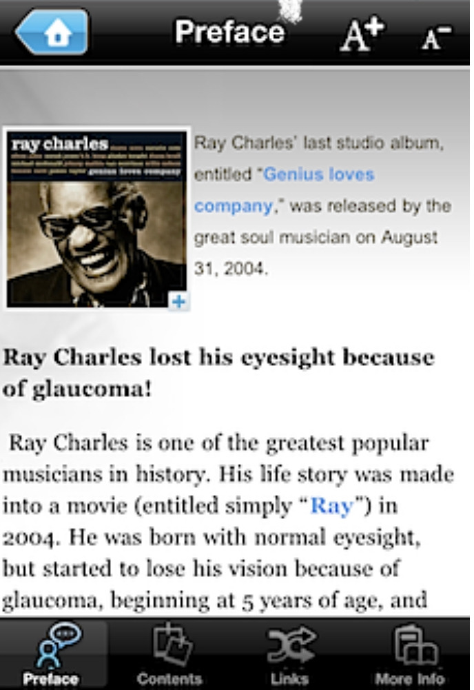 그런데 조사를 좀 해 보다보니, 전세계적으로도 당시 녹내장 환자용 앱이 나와있는 것이 없다는 것을 알게 되었습니다. 그래서 영어 초벌 번역을 후원자의 도움을 받아 하고, 최종번역 및 감수는 제가 직접 다 하고, 훌륭한 개발자와 함께 영문으로 된 <Glaucoma Handbook>을 만들고 앱스토어에 업로드하였습니다. 당시에 첨단 기능이었던 하이퍼링크 이동과 공유하기 기능까지 갖춘 제대로 된 앱이었습니다. 이번엔 규모가 더 큰 일을 벌였기 때문에 개발비는 나중에 앱을 팔아서 드리기로 했습니다.