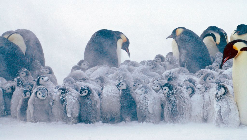 한겨울 세찬 폭풍 속에도 펭귄들을 얼지 않게 하는 온기의 원천은 외부에서 주어지지 않는다. 펭귄 각자의 체온이 그 힘의 기본이 된다. 수많은 펭귄들이 체온을 서로 나누고 눈보라에 교대로 막아서며 추운 남극의 겨울을 견뎌낸다.