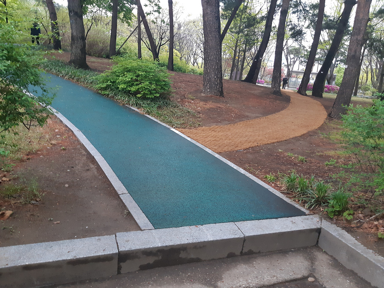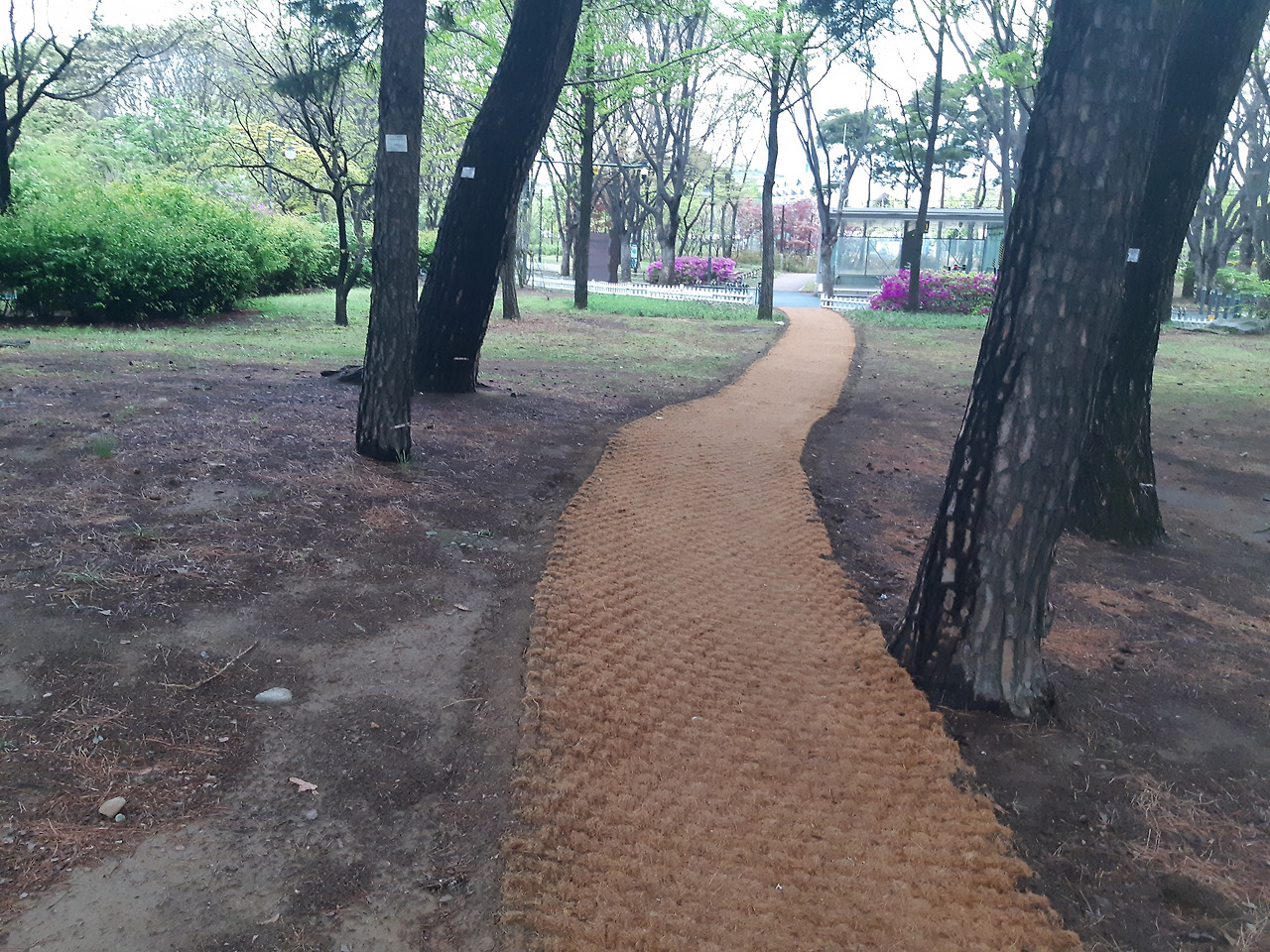 그러던 어느 날 출근길에 나는 깜짝 놀랐다. 진짜길이 생겼다. 샛길 그대로 바닥에 거적을 깔아 길게 펼쳐 길을 만들어놓았다. 지하철역앞에서항상 쑥스럽게 뛰어넘곤 했던 울타리도 이제는 뚫려있었다. 숲 사이로 멋진 길이 생겼다. 그 길 따라 달리면서나는 공원을 관리하는 이름 모를 공무원에게 진심으로 감사했다.