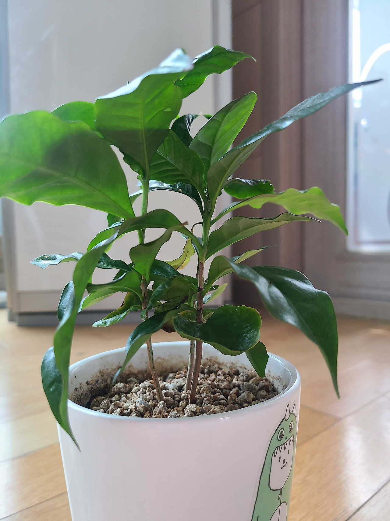 화분에 옮겨 심어 놓고 보니 커피나무 키우기는 생각보다 쉬웠다. 커피나무는 마치 말 잘 듣는 아기와 같았다. 물 주는 때를 넘기면 잎을 축 늘어뜨리며 풀이 죽었다가도 '어이쿠 얘가 왜 이래.' 하며 물을 주면 금방 다시 잎을 반짝 들어 올리며 생기를 찾았다. 배고파 울던 아기가 엄마 젖을 먹고 나서 방글방글 웃는 모습이 떠올랐다. 다른 식물은 그와 달리 보통 과묵한 편이다. 혹시 흙이 마르지 않았는지 잘 살펴 물을 주지 않으면 조용히 잎이 마르며 시들어간다. 뒤늦게 알아차리고 손을 써도 이미 내상을 입은 경우가 많았다.