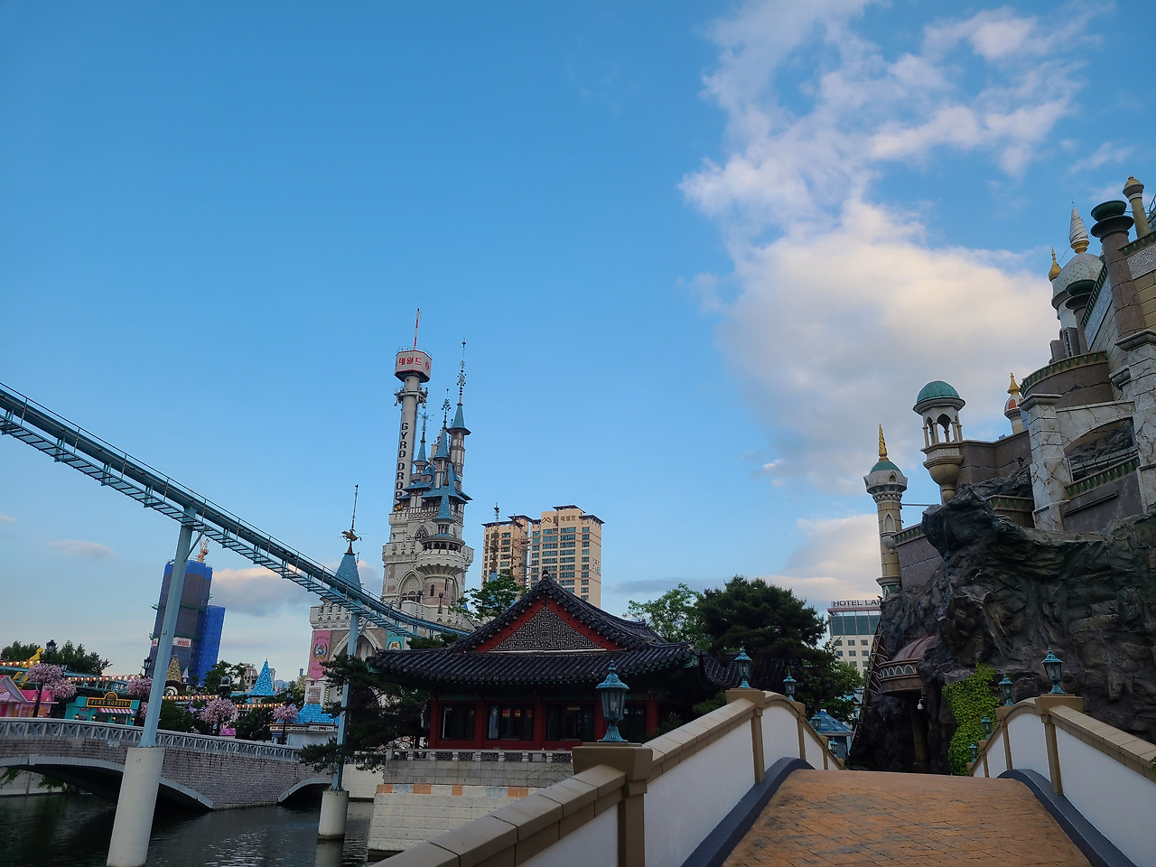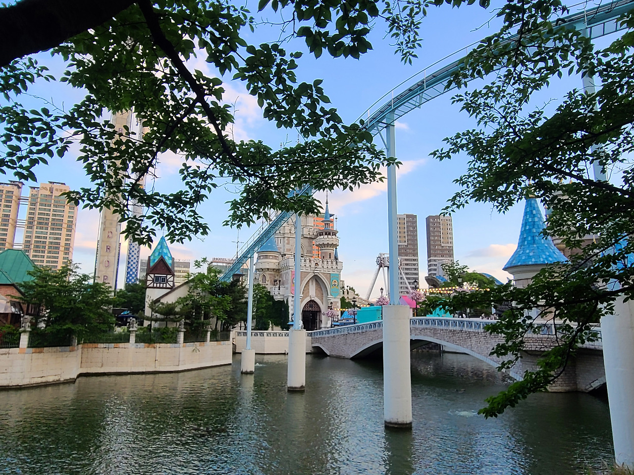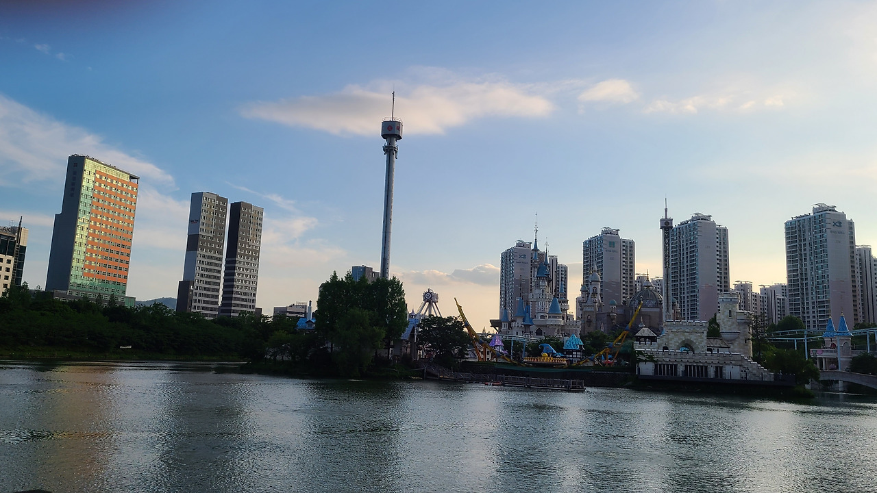 호수 가운데 인공섬은 놀이공원과 이어져 있어 놀이 기구 타는 소리가 울려 퍼진다. 놀이 기구의 핵심은 중력을 거스르는 물리학이라서, 뚝 떨어지기 아니면 빙글빙글 돌기가 기본이다. 벤치에 앉은 연인들은 놀이 기구 비명 소리를 들으며 이야기를 나눈다.