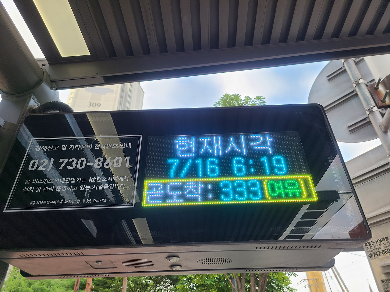 동네 버스 정류장에 안내 전광판이 있다. 곧 도착할 버스 번호가 뜨면서 버스 안에 승객이 얼마나 타고 있는지 세 단계로 알려준다. 여유-보통-혼잡.