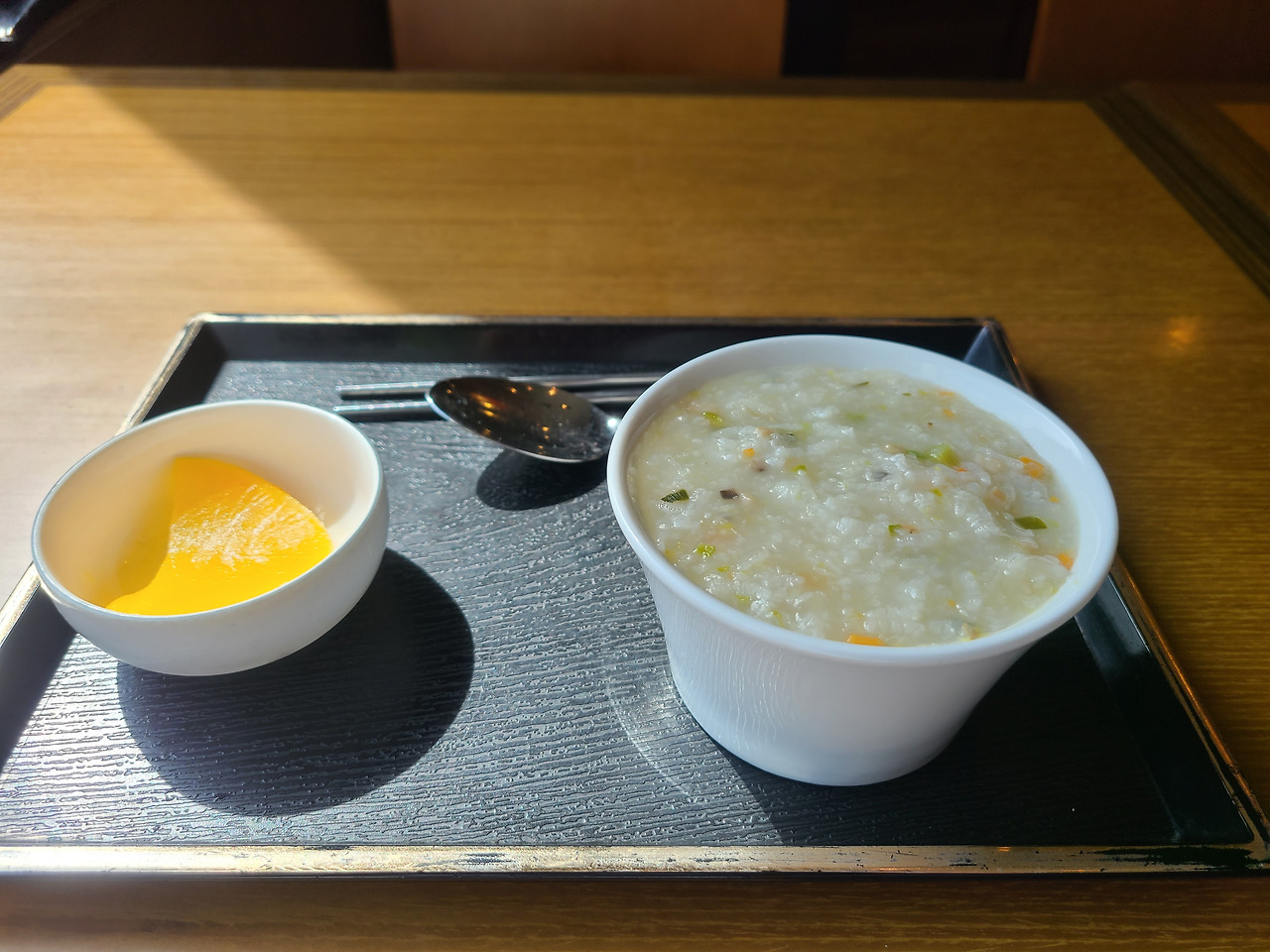 1년에 한 번씩 받는 건강검진. 점심 무렵 검진을 마치고 검진센터 안에 있는 카페테리아로 가면 작은 그릇에 죽을 담아 준다. 전날 저녁부터 금식을 견딘 몸에 따뜻한 곡기가 들어가니 좋다. 영화 '명량'에서, 이순신 장군이 전투후에 소년병이 건넨 토란을 먹으며 "먹을 수 있으니 좋구나." 했던 것처럼, 비록 목숨을 걸진 않았지만 아무튼 살아있어 다행이라는 느낌으로 죽을 떠먹는다.