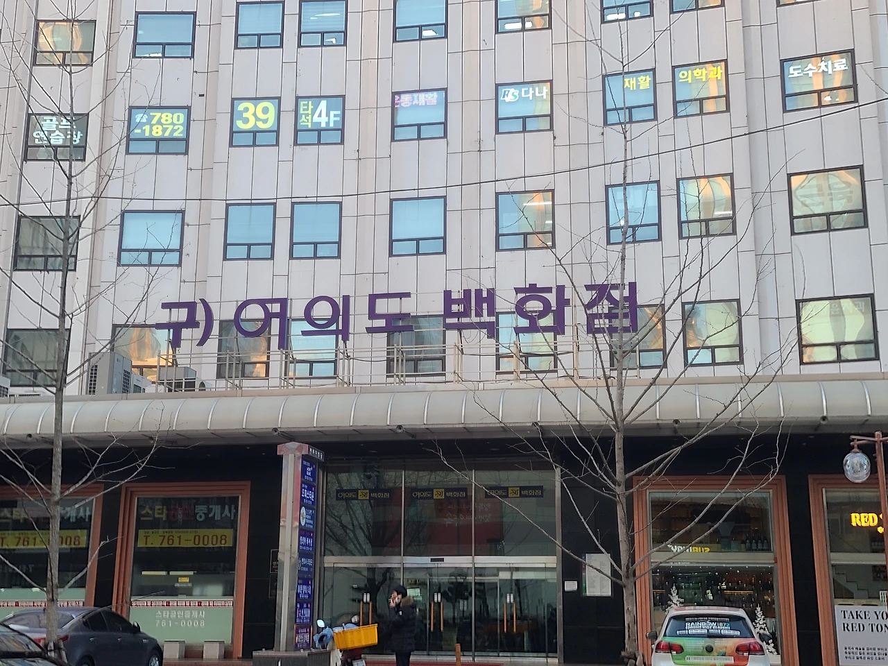 지금은 많이 낡았지만 1983년 신축 때는 그 당시 몇 개 없던 백화점으로 개장했다. 영업 부진으로 문 닫은 후에 창문도 새로 만들고 내부 공간을 나누어 오피스 빌딩으로 다시 태어났다. 그래도 사람들은 계속 백화점이라고 불렀나 보다. 이제 아예 건물 전면에 '구) 여의도 백화점'이라고 커다랗게 간판을 달아놓았다.
