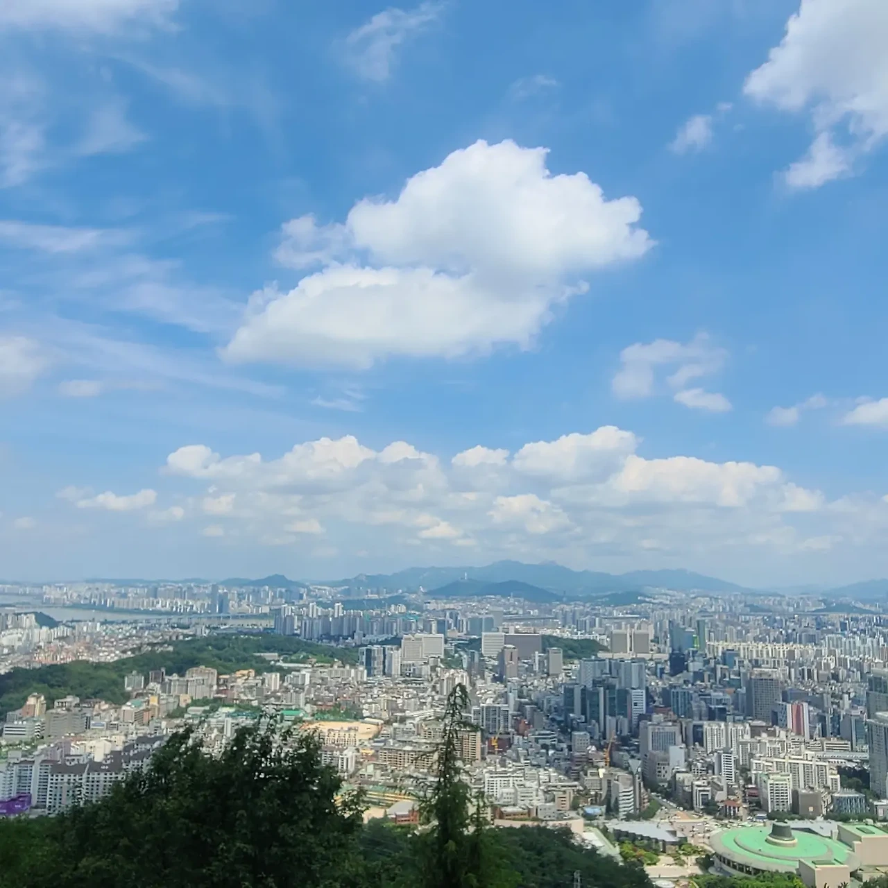 장마전선이 잠시 자리를 뜬 사이 반짝 푸른하늘과 흰 구름이 좋은 주말 아침, 집에서 멀지 않아 그냥 '저기 산이 보이네.' 하던 낮은 산에 올랐다. 하늘과 나무와 풀과 바람 그리고 그늘을따라 걷는 길, 후덥지근한날씨에 땀은 꽤 흘렸지만, 사방이 탁 트인 풍경과 시원한 바람이 기다리고 있었다.