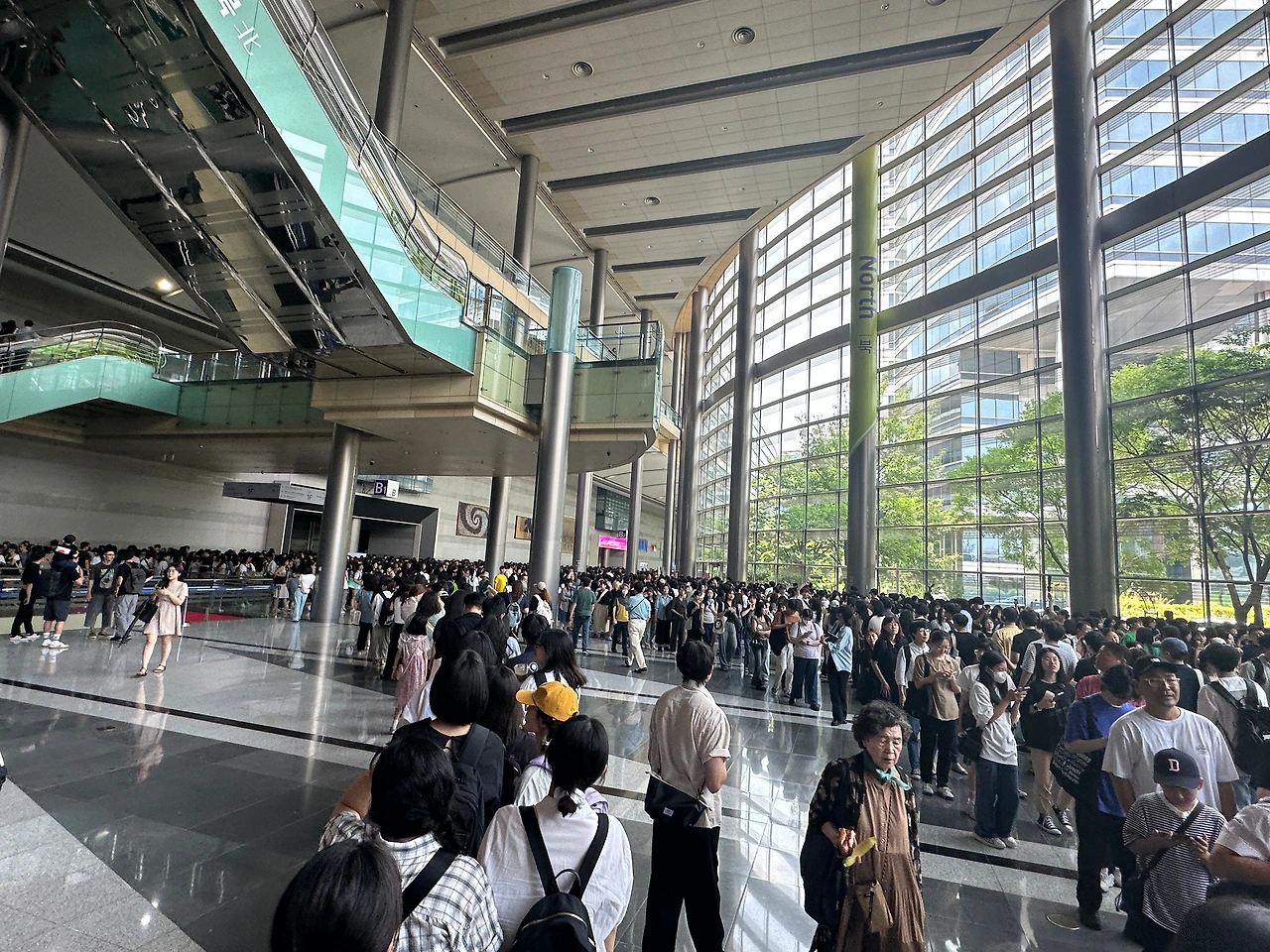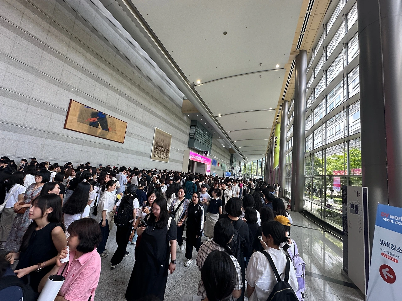 6월의 마지막 주말에 서울국제도서전에 다녀왔다. 좋아하는 작가의 사인회가 토요일 오후 2시라서 전시장 입구에 12시 40분쯤 도착했다. 온라인으로 예매한 관람객은 손목 팔찌로 교환해야 입장이 가능했는데, 그 줄이 생각보다 너무 길었다. 겨우 줄 끝을 찾아 서고 보니 똬리를 튼 줄이 한도 끝도 없었다. '우와 이렇게나 책 읽는 사람들이 많았었나?' 문체부 통계로는 성인 57%가 1년에 책을 한 권도 읽지 않는다던데, 홀을 가득 채운 젊은 열기가 반갑기도 했지만 당장 걱정되는 일은 입장 대기 시간이었다.