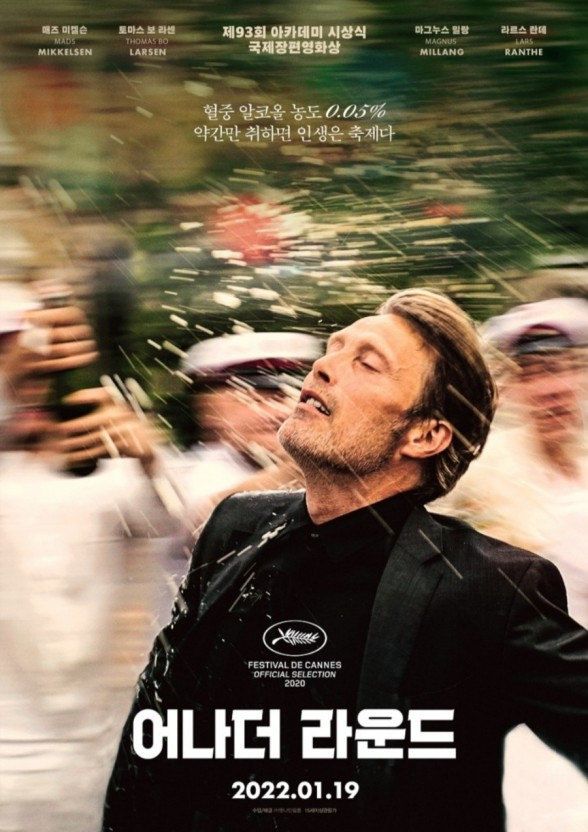 영화 ‘어나더라운드’는 열정 없는 일상을 사는 코펜하겐의 고등학교 교사 4명이 술을 마시며 나누는 가설에서 시작한다. 인간은 최적 혈중알코올 농도에서 살짝(0.05%) 부족하므로 그만큼 채우면 삶이 창의적이고 활발해진다는 가설. 교사 중 마틴(매즈 미켈슨)은 검증을 위한 실험에 돌입하고 적당히 취해서 들어간 수업과 가족들과의 관계에서 다시 생기를 찾는다. 그것을 본 나머지 친구 3명도 실험에 동참하며 영화가 점점 흥미롭게 전개되는데, 영화 마지막 장면에 마틴이 술을 마시며 부둣가에서 추는 한바탕 댄스가 인상적인 영화다.
