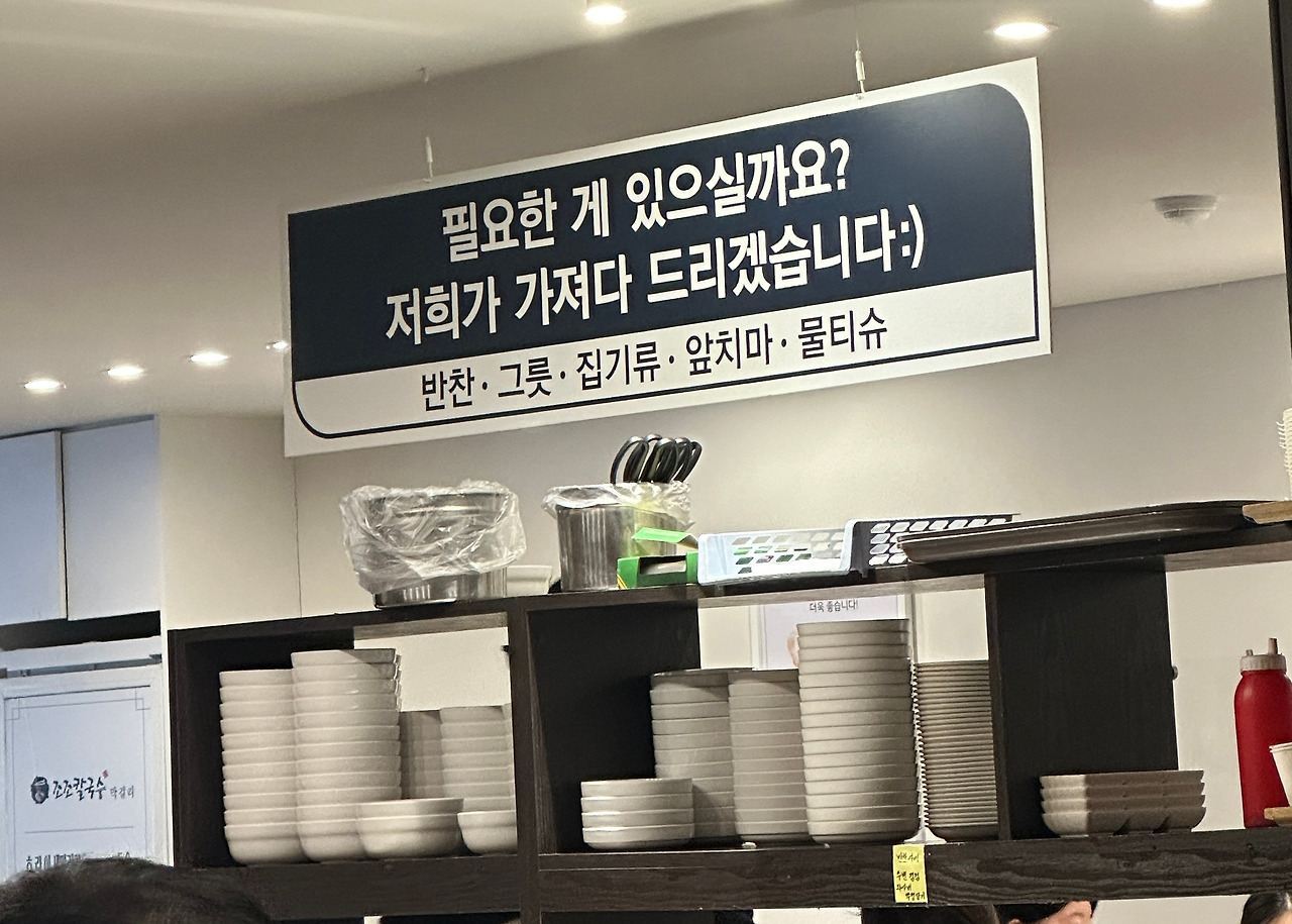 가평 가족 여행길이었다. 예전부터 들렀던 오래된 맛집에 다시 찾아갔다. 허영만의 <백반기행>에도 소개된 가마솥에 끓이는 잣곰탕과 잣국수가 주메뉴인 곳. 그런데 뭔가 분위기가 달라졌다. 입구에 패스트푸드점에 있음 직한 키오스크가 서있다. 주방 쪽 점원이 키오스크로 주문해 달라고 소리쳤다. 우선 먹고 갈 건지 포장인지부터 선택해야 했다. 먹고 간다고 입력했더니 그럼 어디에 앉을건지 묻는다. 이건 뭐지 하고 둘러보니 자리마다 번호가 크게 붙어있다. 비어있는 테이블 번호를 넣으니 가족들 메뉴를 골라야 할 차례다. 너는 잣국수 나는 잣곰탕, 너는? 어 그런데 잣해물짬뽕도 있네 그거 먹어볼 사람 있나? 없구나 아 그리고 도토리묵 시킬래 감자부침 시킬까 의견을 모으고 공깃밥은 포함인가요 주문해야 하나요 점원에게 묻는 동안 식구들 모두 자리에 앉지 못하고 서있어야 했다. 그동안 뒤에 줄을 선 다른 손님은 그 광경을 지켜보고 있고...