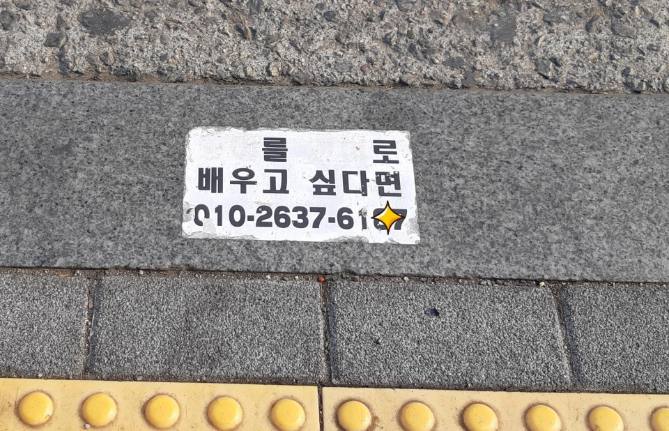 얼마 전 집 근처 횡단보도 앞에서 신호등을 기다리다가 바닥에 붙어있는 신기한 작은 광고를 보았다.