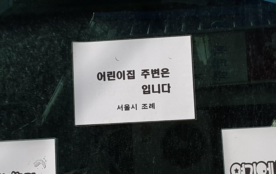 이런 경우들을 종종 본다. 특히 버스 안이나, 건물 벽에 붙은 오래된 벽보에 있는 경고성 멘트들이 주로 그렇다. 강조해 놓은 글자들이 먼저 사라진다. 예전에 서촌에 갔을 때 어딘가 어린이집 벽에 붙어있던 “어린이집 주변은 입니다.”라고 당당히 쓰여 있는 퀴즈 같은 벽보도 그랬었다.