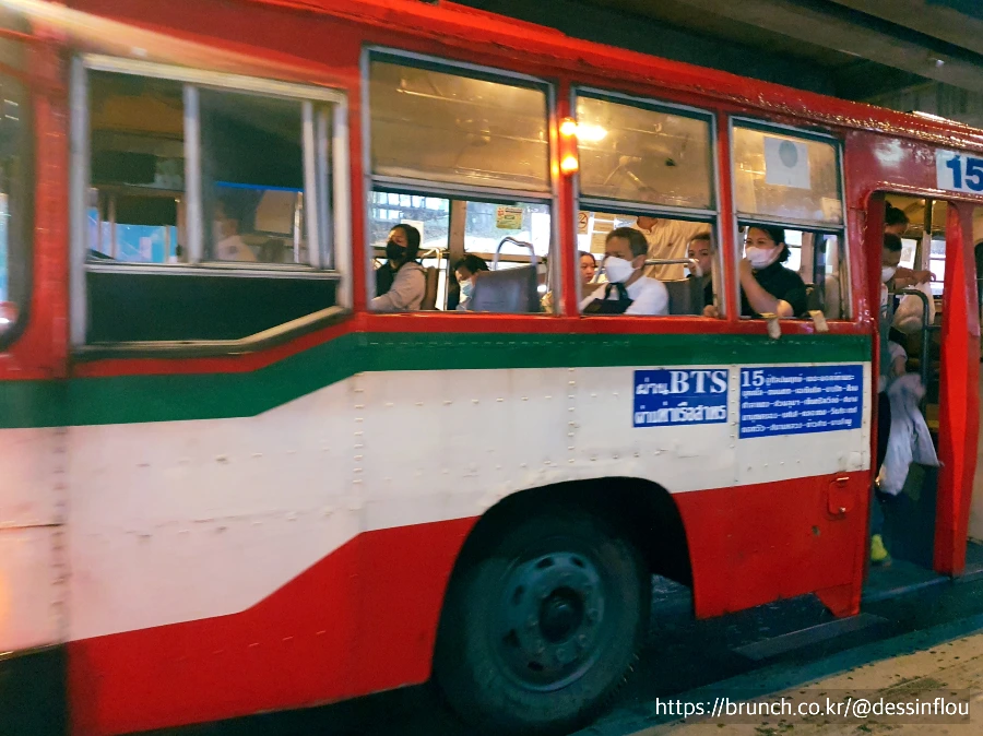 그런데, 첫날 카오산 로드로 올 때 탔던 버스와 숫자는 같은데 외형이 달랐다.