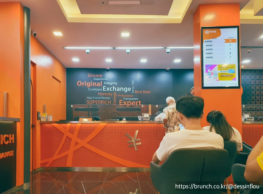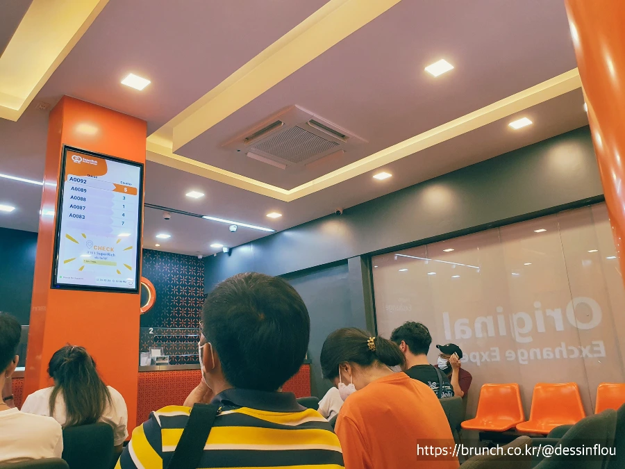 환전소의 내부는 세련되고 깨끗했다. 쾌적한 에어컨은 기본이고 돈을 환전하는 방식도 한국의 은행과 비슷했다. 다른 점이 있다면 입구의 직원에게 여권을 먼저 보여줘야 한다는 것.