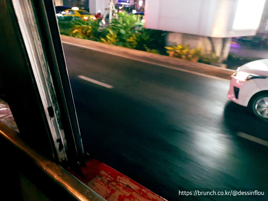 카오산 로드로 처음 오던 날 탔던 에어컨 없는 빨간 버스.