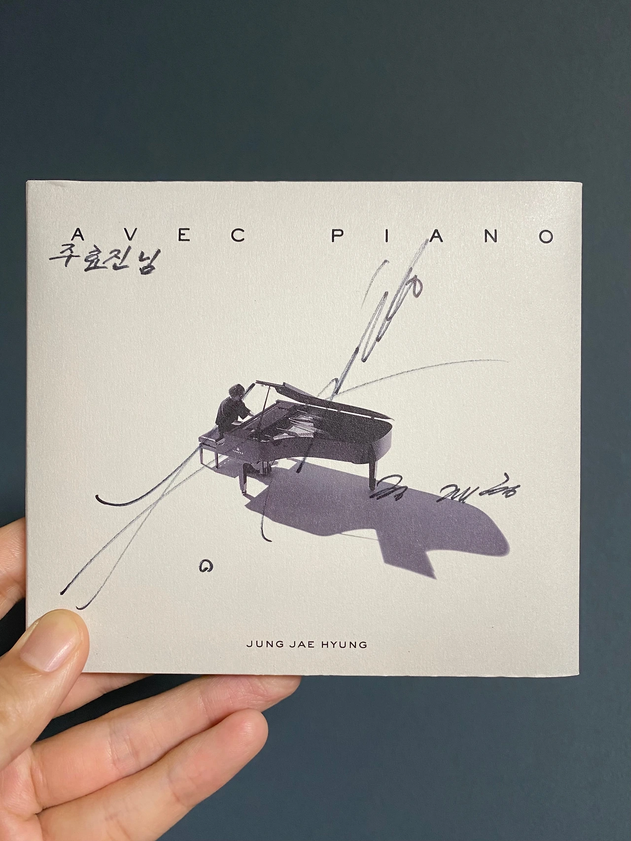 상자 안엔 시디가 한 장 들어있었다. 가수 정재형 님의 AVEC PIANO 앨범. 겉면에 사인으로 흘려 쓴 정재형 님의 이름은 조금 알아보기 힘들었다. 하지만 왼쪽 위에 적혀 있는 이름은 시디가 누구에게 보내진 건지 명확하게 쓰여있었다. '주효진 님'